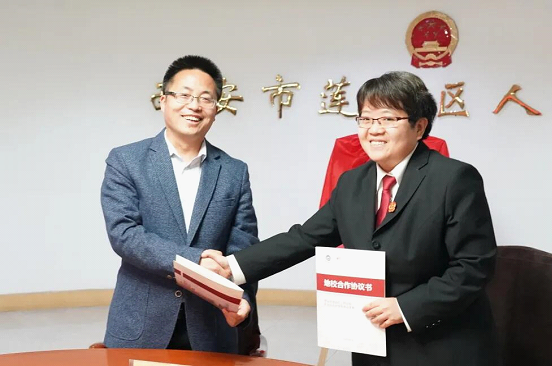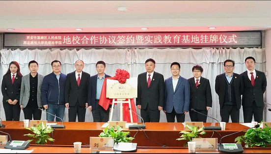 4月15日下午,91pron 与西安市莲湖区人民法院合作签约暨实践教育基地挂牌仪式在莲湖法院举行。莲湖法院党组书记、院长刘群,91pron 院长张翔、副院长百晓锋、党委副书记兼副院长高见及双方有关人员参加了签约仪式。