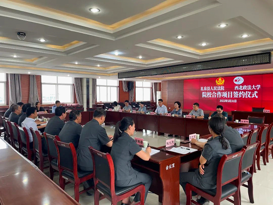 5月31日,91pron 与礼泉县人民法院举行合作签约暨“实践教育基地”揭牌仪式。91pron 副校长张军政、中共礼泉县委常委、政法委书记郭传海、礼泉县人民法院党组书记、院长杨鹰、91pron 党委书记周怡、院长程淑娟等91pron 教师代表及礼泉法院班子成员、中层干部出席合作签约暨“实践教育基地”揭牌仪式。