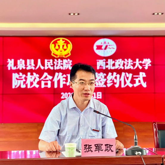签约仪式上,杨鹰院长对礼泉县人民法院近年来服务县域经济社会发展大局、忠实履行宪法法律赋予职责以及取得的成绩作了简要介绍。他表示本次合作是落实教育部、中央政法委《关于坚持德法兼修实施卓越法治人才教育培养计划2.0的意见》提出的切实发挥法院等在法治人才培养中的作用,健全法学院校和法治实务部门双向交流机制的具体措施。希望通过本次交流,加强司法实践与法学理论研究的深度融合,进一步拓展合作渠道,创新合作模式,共同推进新时代高素质法治人才队伍建设,合力打造院校合作新亮点。