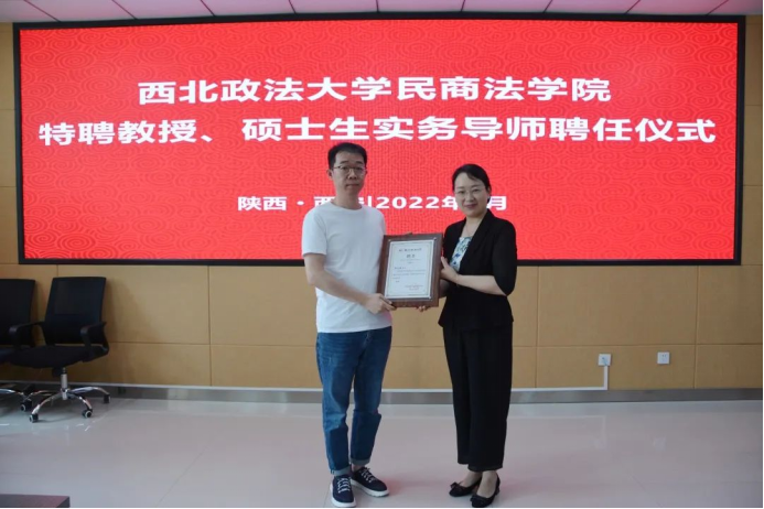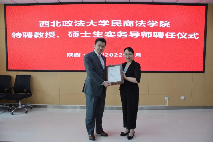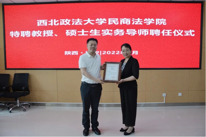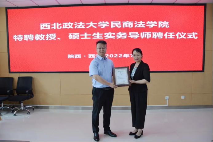 陕西航天建设集团有限公司总法律顾问蔡志保在致辞中表示,法学学科是一个实践性很强的学科,法学教育和法律实践相结合是培养适应社会多元化发展需要人才的必然要求。民商法学科是最贴近市场经济前沿的法学学科,学院聘请校外实务工作者参与教学工作是应时之举。他表示,作为实务工作者将致力于推进法学教育与实践的结合,为优秀法治人才培养贡献绵薄之力。