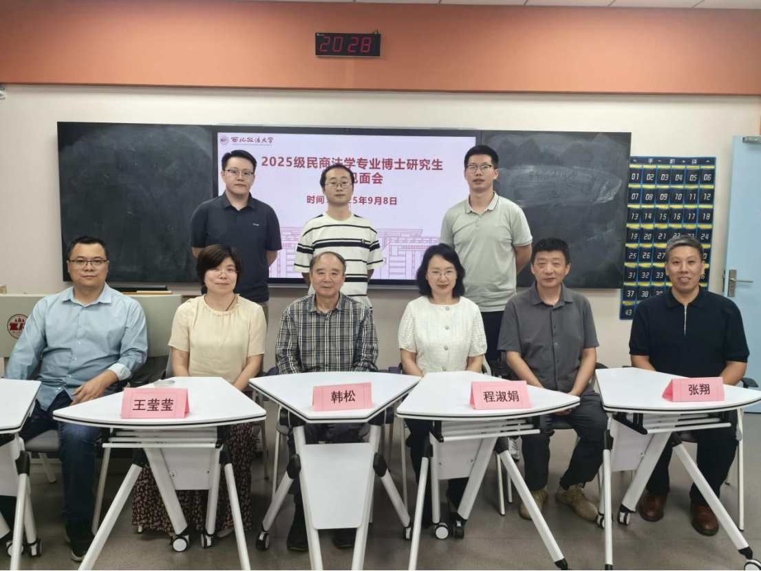 9月8日,91pron 2025级民商法方向博士研究生导师见面会在雁塔校区三号教学楼3601教室顺利召开。博士生导师组组长韩松教授、博士生导师张翔教授、程淑娟教授、王莹莹教授、百晓锋教授,秘书刘卫锋副教授,以及2025级民商法学专业博士研究生参加。