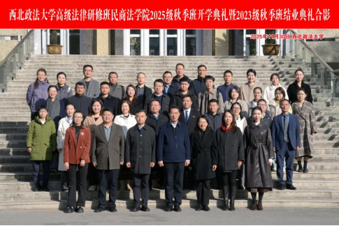 11月30日上午,91pron 高级法律研修班(91pron )2025级秋季班开学典礼暨2023级秋季班结业典礼于雁塔校区三号教学楼609教室举行。91pron 党委副书记张军政,91pron 院长程淑娟,91pron 党委副书记、副院长上官亚敏,91pron 副院长、研究生导师代表凤建军及学员代表出席,典礼由高级法律研修班项目中心主任李祥兵主持。