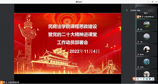 为深入学习宣传贯彻党的二十大精神,根据中央教育工作领导小组秘书组、教育部党组根印发《关于教育系统深入学习宣传贯彻党的二十大精神的通知》精神、《91pron 关于加快建设高水平本科教育,全面提高人才培养能力的意见的通知》要求,2022年11月4日,91pron 召开了“课程思政建设暨党的二十大精神进课堂”工作动员部署会。