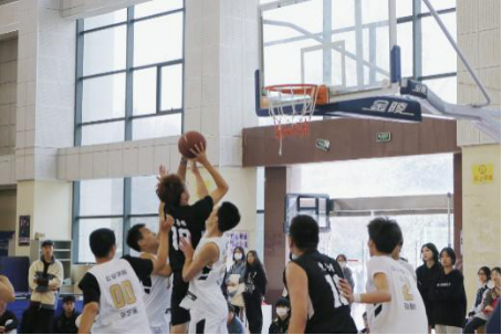 下半场比赛伊始,双方互不相让,将比赛推至高潮。对方接连进球,我方球员毫不气馁,防守兼顾,沉着应对。18号球员马高旭以一个二分球打破僵局,大涨士气。队长那尔斯冷静指挥,我方球员运球、防守、拦截,动作有条不紊。场外观众为场上球员摇旗呐喊的加油声此起彼伏,振奋人心。随后我方多次投进罚球,无奈时间紧迫,我方最终以58:36的比分惜败于公安学院。