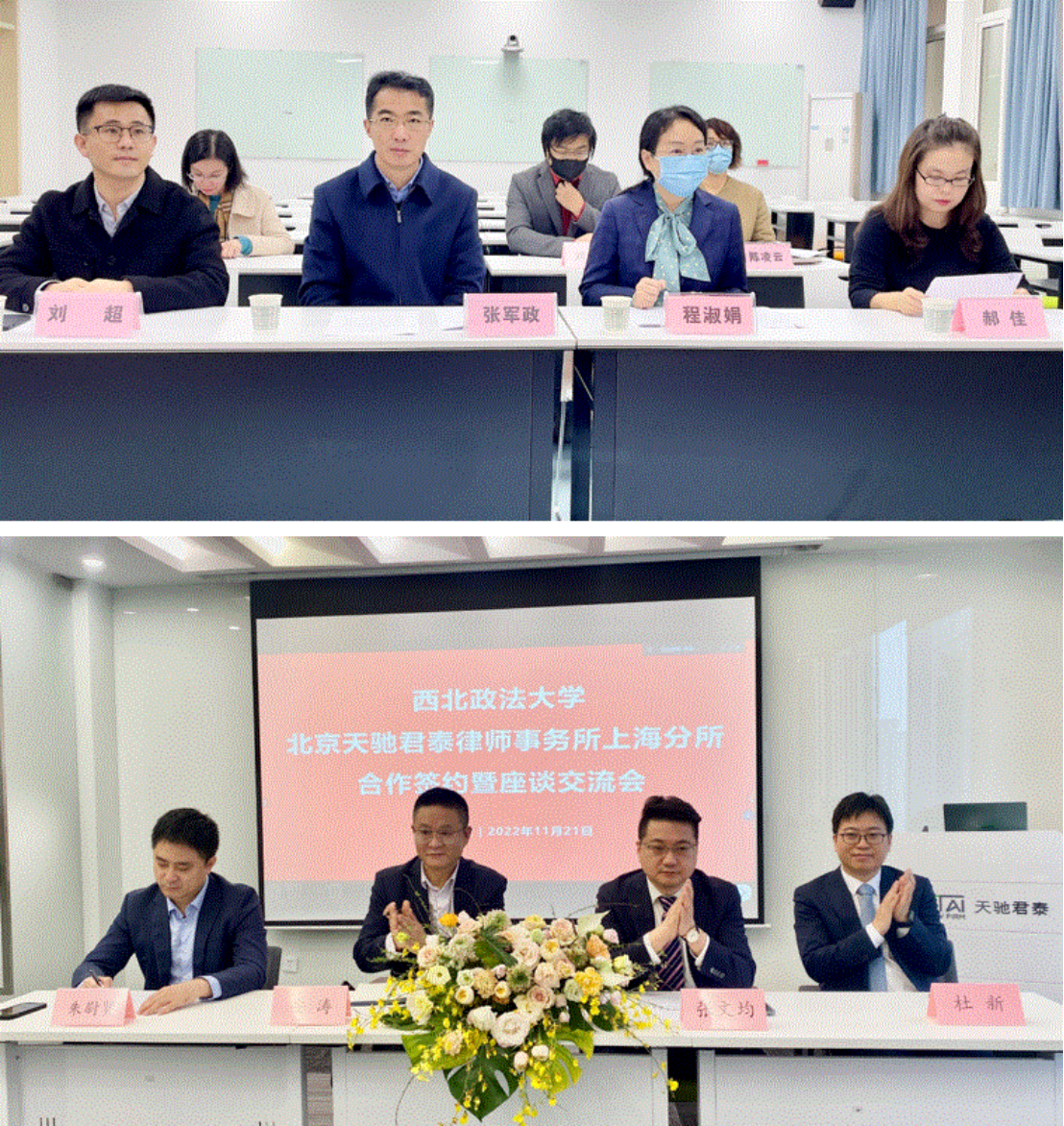 2022年11月21日上午,91pron 与北京天驰君泰律师事务所上海分所举行合作签约暨特聘教授、硕士生导师聘任仪式。本次仪式上,北京天驰君泰律师事务所上海分所高级合伙人杜新律师被聘任为特聘教授兼硕士生导师,合伙人朱尉贤律师被聘任为硕士生导师。