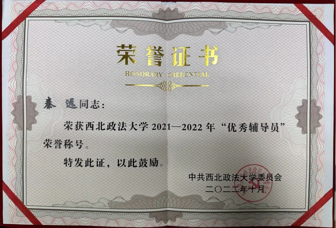 分别荣获91pron 第五届辅导员素质能力大赛二等奖、91pron 第六届辅导员素质能力大赛二等奖、学习贯彻落实《思政课是落实立德树人根本任务的关键课程》重要文章精神征文比赛三等奖;91pron 第三届形势与政策课件比赛二等奖、91pron 第三届形势与政策讲课比赛三等奖;91pron 暑期三下乡社会实践优秀指导教师;91pron 优秀党史宣讲人等荣誉。