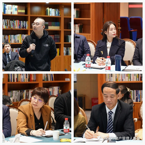 易先彩会长,协会专家、副会长王午生老师,白景科副会长,程冬法官,张军海法官,市管协投资人招募和资产处置委员会主任、专家库专家、北京康达(西安)律师事务所副主任李劲,市管协培训委员会副主任、专家库专家、北京康达(西安)律师事务所高级合伙人任自力,市管协会副秘书长、专家库专家范大浪就破产管理人业务讨论进行了交流。摩达律师实务所焦博律师,中鼎元品陕西区域负责人颜如玉、康达(西安)律师事务所李志旭律师、德恒(西安)律师事务所黄潇蕊律师分别从不同角度分享了在管理人接管中的实务经验和体会。