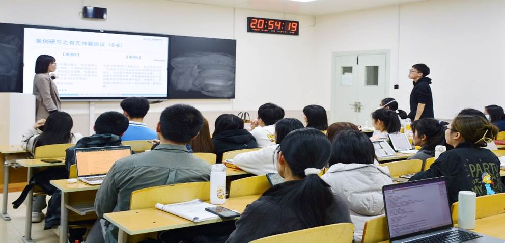讲座的第四个环节,刘红主任讲授了仲裁协议审查的相关知识。她将审查过程分为三个步骤:一、判断有无仲裁协议,具体内容包括有无代理权限、是否为当事人意思表示等;二、判断目标机构有无管辖权,其中要关注协议约定的仲裁机构是否有且仅有一所;三、确认拟请求事项是否在可仲裁范围内。同学们还在刘红主任的指导下对具体案例进行了相关判断研习,将理论知识与应用实践相结合,深化了对仲裁法律知识的掌握。