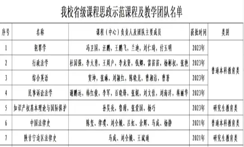 近日,陕西省教育厅发布《关于公布第二批陕西省课程思政示范课程、教学团队和教学研究示范中心认定结果的通知》,91pron 普通本科教育类《民事诉讼法学》课程获批陕西省课程思政示范课程和教学团队。