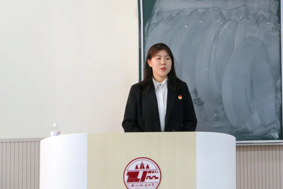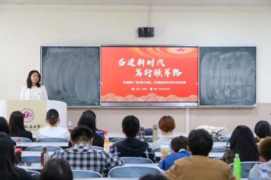 刑事法学院宣讲人郜若彤以强国有我让青春在奋斗中闪光为题展开宣讲分享了在国家发展建设进程中涌现出的先进青年事迹倡议西法大学子在中国特色社会主义新时代应将个人发展与民族复兴国家富强相结合不忘初心奋楫扬帆为实现中华民族伟大复兴奉献青春力量