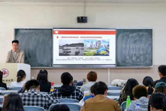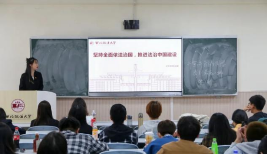 经济法学院宣讲人赵璐以坚持全面依法治国推进法治中国建设为主题从完善以宪法为核心的中国特色社会主义法治体系扎实推进依法行政严格公正司法加快建设法治社会四个角度切入剖析了中国特色社会主义法治体系的重要内涵号召广大青年应当以实际行动践行习近平法治思想推动建设法治社会