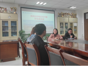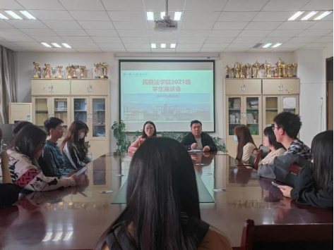 团委书记丁艳艳和2021级辅导员张智超组织开展2023年春季学生座谈会暨“一站式”学生社区建设交流会,2021级各班代表及“一站式”学生社区学生代表参会。
