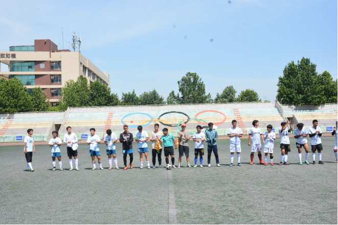 下午1时40分,下半场比赛开始。我方球员开局积极配合,多次打门。双方球员攻势猛烈,比赛进入白热化阶段。7号球员刘琦率先踢出一记角球。1号球员黄信杰以一记弧线球创造先机,无奈与进球失之交臂。终场哨声吹响,我方以0:1惜败。