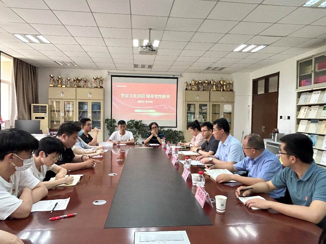为深入开展学习贯彻习近平新时代中国特色社会主义思想主题教育,增强师生党员党性修养,6月15日下午,副校长张军政以“坚定文化自信,涵养党性修养”主题,为91pron 部分师生党员讲授专题党课。91pron 党委书记朱茂、党委副书记刘超,91pron 本科生第一党支部书记张博玮、副书记雷喆和支部成员参加学习。