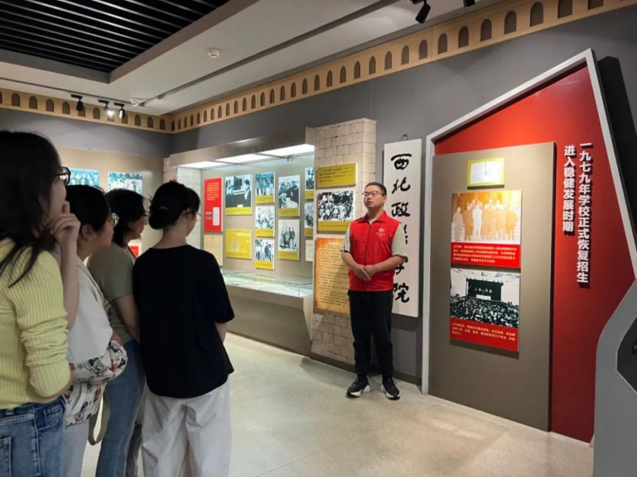 在讲解员的带领下,学院师生依次参观了我校在陕北公学时期、延安大学时期、西北人民革命大学时期、西北政法干部学校时期、中央政法干校西北分校时期、西安政法学院时期、西安政治经济学院时期、西北政法学院时期至今等不同历史时期展区的内容。一幅幅校史变迁的老照片、一个个承载建校记忆的老物件、一桩桩学校开天辟地发展的大事件,既彰显着西法大厚重的办学底蕴,又生动地呈现了一代代西法大人砥砺前行、踔厉奋发的峥嵘岁月。