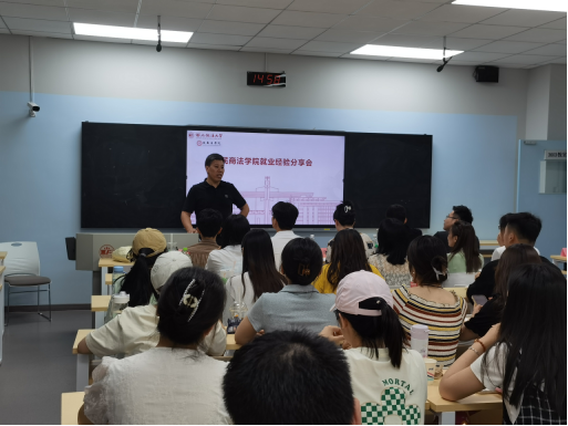赵龙就其在校实习经历与毕业工作经历,从法院、企业、律师事务所三个方面介绍不同就业路径所需要具备的能力,并立足律师一职向同学们详细介绍当下律师模式以及发展现状。最后,赵龙指出专业性是法学生立身之本,应当时刻保持认真的学习态度,积极在实践中打磨功底。除此之外,沟通协调能力的锻炼也应当给予重视。