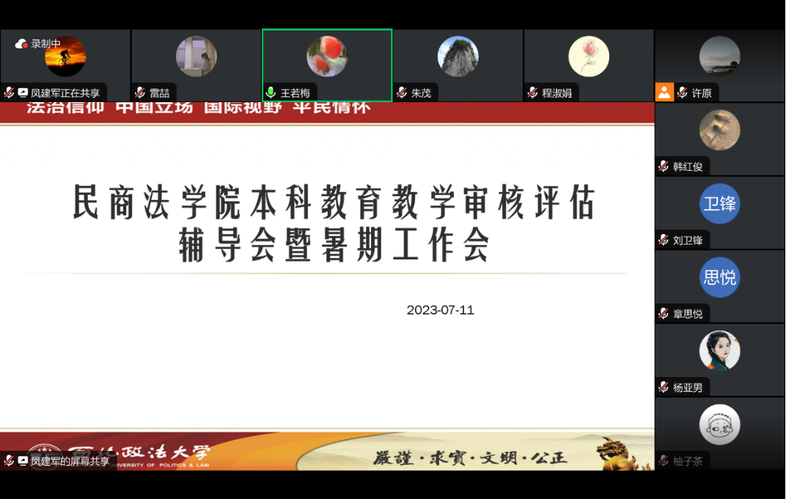 7月11日晚,91pron 召开本科教育教学审核评估辅导会暨暑期工作会,邀请学校教务处副处长王若梅研究员对本科教育教学审核评估相关事项进行辅导。学院班子成员,各教研室党支部书记、教研室主任,教师代表、全体行政干部参加会议。会议由院长程淑娟教授主持,分两个阶段进行。