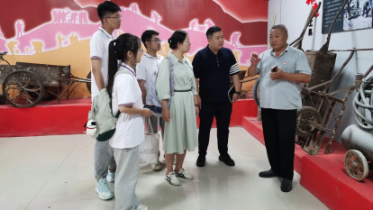 在全国劳模、金刚纂村党支部书记马广业书记的带领下,实践队成员参观了村史馆。马广业同志向大家介绍了该村党支部带领村民历时11年开山修路的奋斗历程,带领大家参观了当年用于开山修路的工具、村民出工的帐本;同时还向大家介绍了金刚纂村近年来从党建引领、产业振兴、移风易俗等方面全面推进乡村振兴有关工作情况。他希望更多大学生能够参与到推动乡村振兴的进程中来,强化责任担当、投身火热实践。