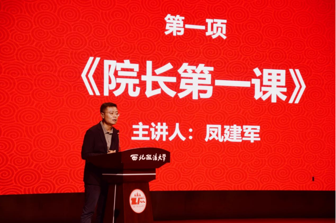 学院副院长凤建军为全体2023级新生讲授“院长第一课”。凤院长对2023级新生的到来表示了热烈的欢迎,对他们的大学生活寄予美好的期待。他介绍了学院的学科建设、师资队伍、研究特色等基本情况,并对同学们的提出了几点要求和希望:一是要厚植家国情怀,牢记责任与使命,始终坚持法治信仰,并将其贯穿于整个大学生涯;二是要始终以专业课学习为中心,注重参加各类课外实践活动,提高自身综合素质;三是要培养高尚独立的人格,拥有独立的思想与思考能力。最后,凤院长勉励全体新生要敢于直面未来,始终保持善良与正直,不断探索,为国家法治事业做出贡献。