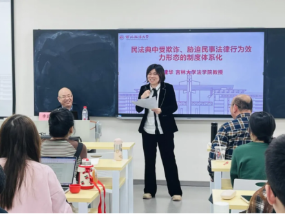 10月28日下午3:00,吉林大学法学院教授、博士生导师,《当代法学》主编李建华为91pron 师生作题为“民法典中受欺诈、胁迫民事法律行为效力形态的制度体系化”的学术讲座。发展规划与学科建设处处长王莹莹教授担任主持人。91pron 袁震教授、陈凌云副教授、朱启莉副教授担任与谈人。
