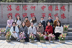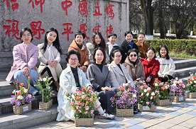 插花活动结束后,老师们在校园里打卡拍照。从艺术创作到教学楼下,相机记录下此刻老师们明媚灿烂的笑容;“平民情怀”纪念碑前,她们带着春日的生机盎然,祝愿幸福顺遂的明天。