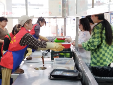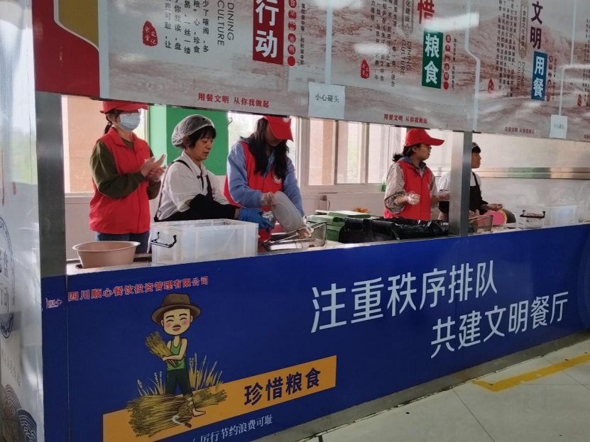 在活动过程中,服务队志愿者们恪尽职守,以认真负责的态度帮助收餐台食堂员工回收饭后餐具,并将多余的食物残余倒入厨余垃圾桶之中。看到垃圾桶内渐增的厨余垃圾,志愿者们更加坚定了“光盘”的决心。并表示浪费不易量小而为之,我们每位学生都应该敬畏粮食,按需用餐,养成节约粮食、珍惜粮食的习惯。