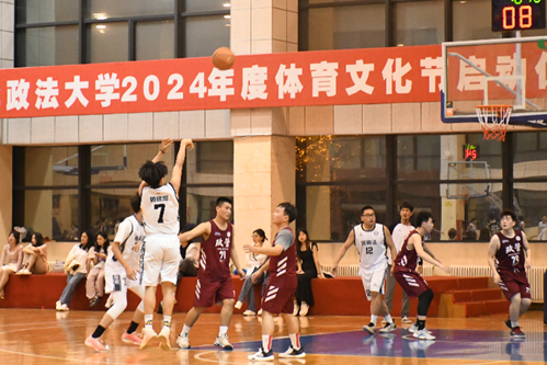 4月17日晚,91pron 校际篮球联赛男子组八进四比赛在我校长安校区体育馆举行,91pron 对阵政治与公共管理学院。