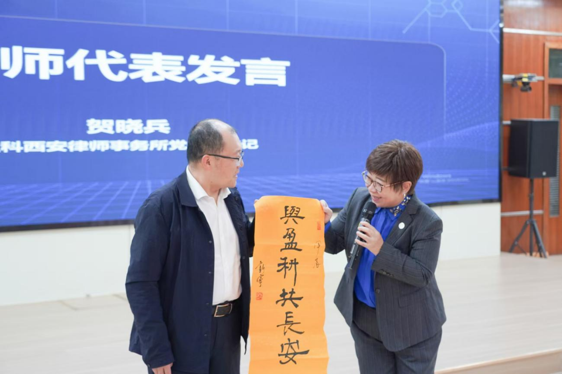 盈科(西安)律师事务所党委副书记,高新区妇联兼职副主席贺晓兵作为导师代表发言,她表示,盈科律师事务所将继续同院校积极合作,为大学生提供更多的创业就业机会,并为91pron 赠送“与盈科共长安”的题字,彰显院所真挚深厚的友谊。