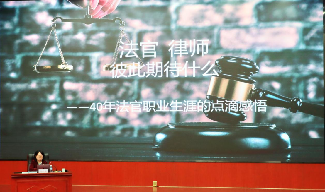 西安市碑林区人民法院民四庭庭长杜飞首先对在场的各位老师进行亲切问候。其次以审判实践为例,讲到法律是需要人与人互动的,律师在庭审中为方便书记员记录应当时刻注意自身的表达速度与表达方式。最后以其审理过的案件为例,讲述了其见证国家立法不断完善的感悟。