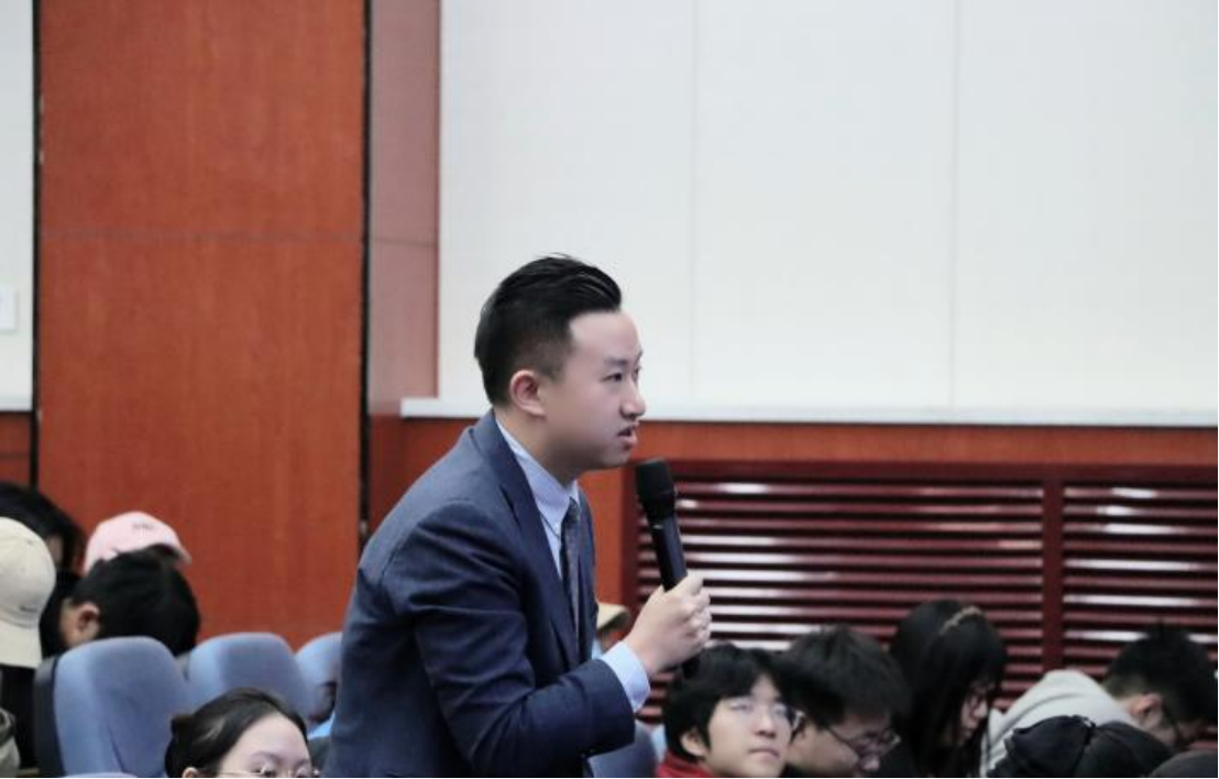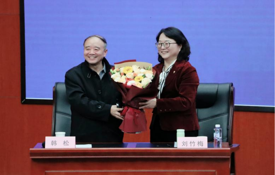 在提问环节中,刘竹梅法官与参会同学和律师进行互动,并且耐心解答了同学们的疑惑。刘竹梅法官为提问者解惑答疑后,韩松教授代表我校向刘竹梅法官献花,表达我们内心的感谢。