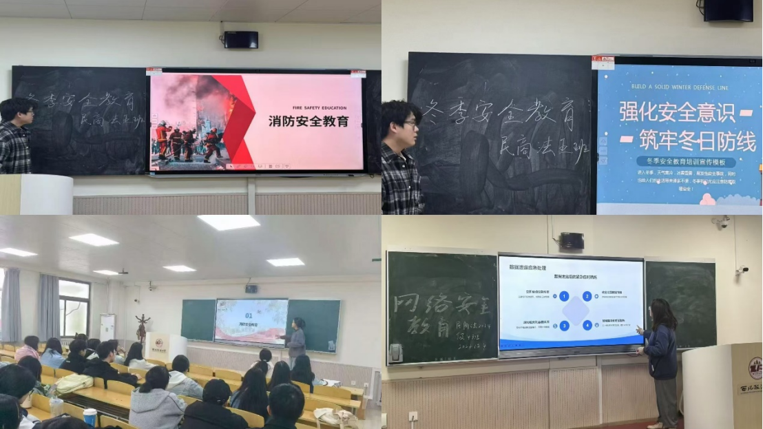 最后,各班开展冬季安全教育,分别从校园消防安全、电动车交通安全等方面,提醒同学们要注意天气变化及时添衣、合理使用电器、外出时遵守交通规则等,以确保自己和他人的安全,有效提高了同学们的安全意识与忧患意识。