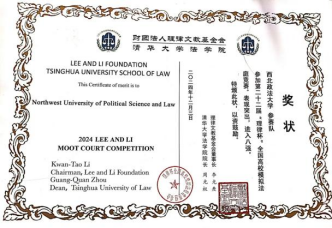 2024年11月29日至12月3日,第二十二届“理律杯”全国高校模拟法庭竞赛在清华大学顺利举行。我校代表队准备充分,凭借扎实的法学理论功底和沉着冷静的临场应变能力,以小组第一的成绩从四十支队伍中脱颖而出,进入本次赛事八强之列,最终获得本次比赛全国三等奖、最佳书状奖。