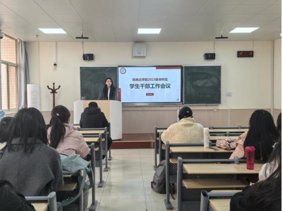 为了进一步强化班级组织建设,扎实推进新学期学风建设,全面营造优良学风,助力学生提升课堂效率,更好发挥学生干部的先锋模范作用,2月28日,91pron 2023级本科生春季学期学生干部工作会暨学风建设推进会在长安校区致知楼301教室召开,本次会议由2023级辅导员刘洋老师和昌盛老师主持,2023级本科生全体学生干部参加。