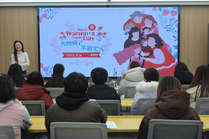 尉钏在三八妇女节到来之际,以“大胆悦己 不被定义”为主题,分别从“女性主义的历史”“女性安全与力量”和“自由生长”三个方面出发,提出女性要打破固有认知框架,大胆实践、积极探索,坚定维护自身权益,勇敢接受最真实的自己,建立稳定的自我认同,在挫折与成长中汲取养分,提高自己的精神内核,做一个内心强大的人。活动中,同学们积极发表自己的观点,分享自身经历,在热烈的师生交流氛围中,大家真切感受到了女性主义的精神内核,更加坚定了向着目标勇毅前行的决心。