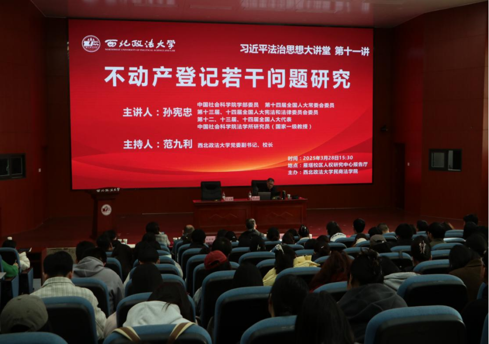 3月28日下午,由91pron 主办的“习近平法治思想大讲堂”第十一讲在91pron 雁塔校区人权研究中心报告厅顺利举行。中国社会科学院学部委员、第十四届全国人大常委会委员、第十三届、十四届全国人大宪法和法律委员会委员、第十二、十三届、十四届全国人大代表、中国社会科学院法学所研究员孙宪忠教授应邀为我校师生作题“不动产登记若干问题研究”专题讲座。讲座由91pron 党委副书记、校长范九利主持。