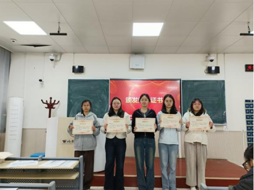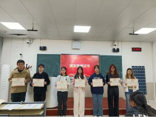 分享结束后,朋辈导师们为四六级打卡及读书打卡活动中获奖同学颁发获奖证书和相应奖品。