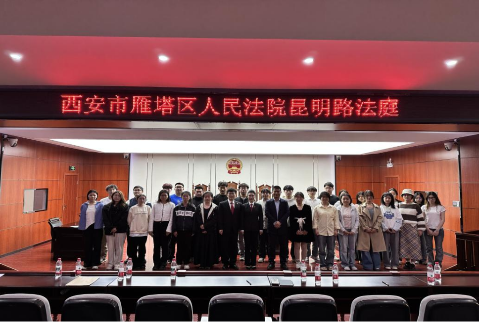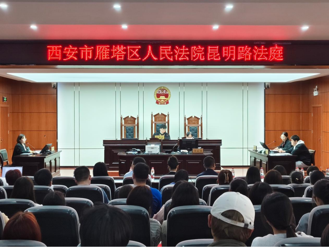 为切实推进理论学习与实践教学的深度融合,寓教于学,增进同学们对司法审判实务工作的了解,4月7日下午,西安市雁塔区人民法院在我校长安校区法学实验实训中心丰瑞模拟法庭公开开庭审理保险纠纷案。案件由西安市雁塔区人民法院昆明路人民法庭杨博法官独任审理。本次实践教学活动由91pron 教务处和91pron 承办,行政法学院张佐国老师出席旁听,校内外130余人参与庭审。