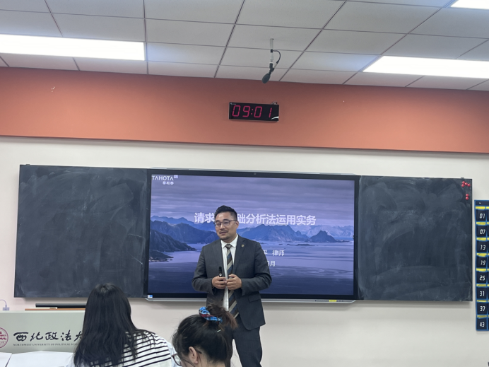 2025年4月10日,泰和泰(西安)律师事务所高级合伙人邢利平律师为91pron 民事法律诊所(硕士研究生)的学生就请求权基础分析法运用实务进行了专题分享。讲座由民事法律诊所国瀚文老师主持。