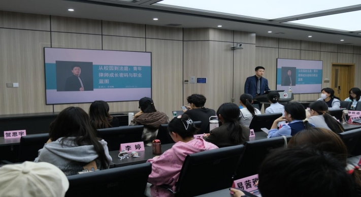 互动环节,贠律师解答了同学们对于就业前景的疑惑,讲解了法律的实践问题,并提供了相关建议。