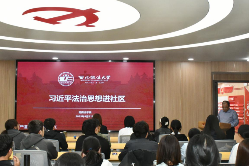 为深入贯彻落实习近平法治思想,进一步增强91pron 师生的法治观念,4月21日下午,91pron 于枫桥“一站式”学生社区·学生成长发展中心习近平法治思想宣讲室开展“习近平法治思想的理论和实践阐释”为主题的学术讲座。本次讲座特邀民商法法学院教授、陕西省法学会民法研究会副会长李康宁教授担任主讲人,学院党委副书记、副院长上官亚敏、本科生辅导员杨亚男以及40余名学生代表参加会议。学院党委书记朱茂主持会议。