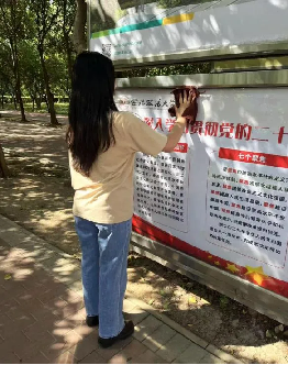 活动结束后,鲁濡铭同学向大家分享了西安市莲湖区北院门街道学习巷社区党支部书记白秀兰的故事。工作的18年间,她共资助 467 名贫困大学生,在疫情期间坚守防控一线,荣获“全国劳动模范”、“全国三八红旗手”等荣誉,所在社区获评“全国先进基层党组织”。白秀兰同志作为党员,始终扎根于人民群众之中,始终发挥着党员的先锋模范作用,为人民排忧解难,是我们每一位党员学习的榜样。