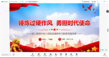 为进一步巩固深化党纪学习教育成果,锲而不舍落实中央八项规定精神,5月26日,91pron 本科生第四党支部书记以“锤炼过硬作风 勇担时代使命”为主题,为支部全体成员讲授专题党课。
