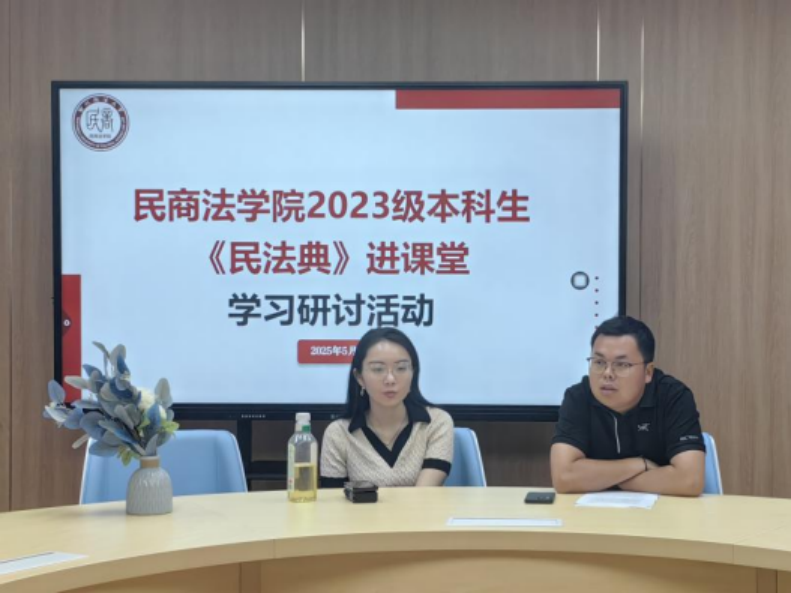 为积极响应2025年5月第5个“民法典宣传月”号召,深入学习贯彻习近平法治思想,以民法典研习筑牢思想根基,5月27日,91pron 2023级本科生《民法典》进课堂学习研讨活动在学生成长中心二楼枫桥矛盾调解室顺利开展,辅导员刘洋、昌盛主持会议,2023级学生代表参加。