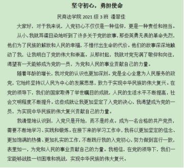 交流中,党员们围绕“为何入党”“何为党员担当”等展开赤诚对。有人回溯递交入党申请书时的激动时刻,将初心锚定在“为人民服务”的朴素信仰中;有人结合法学专业背景,坦言要让党员身份成为践行公平正义的精神标尺;更有人以未来职业规划为引,承诺在司法实践中始终保持入党时的纯粹热忱。这场跨越空间的思想碰撞,没有华丽辞藻,却在一句句真挚的自我剖白中,勾勒出民商学子“党徽与法徽同辉”的精神底色。