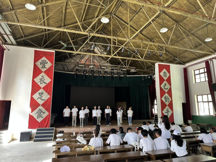 实践团首站来到雪地讲话旧址。在这里,大家聆听旧址背后的革命故事,深刻领会当年革命先辈传递信念、凝聚力量的历史意义。随后开展的《重走革命路》特色实践活动,同学们以青春之音,讲述长征故事,传承长征精神,让成员们沉浸式体验革命先辈的艰辛征程,在中感悟信仰的力量。