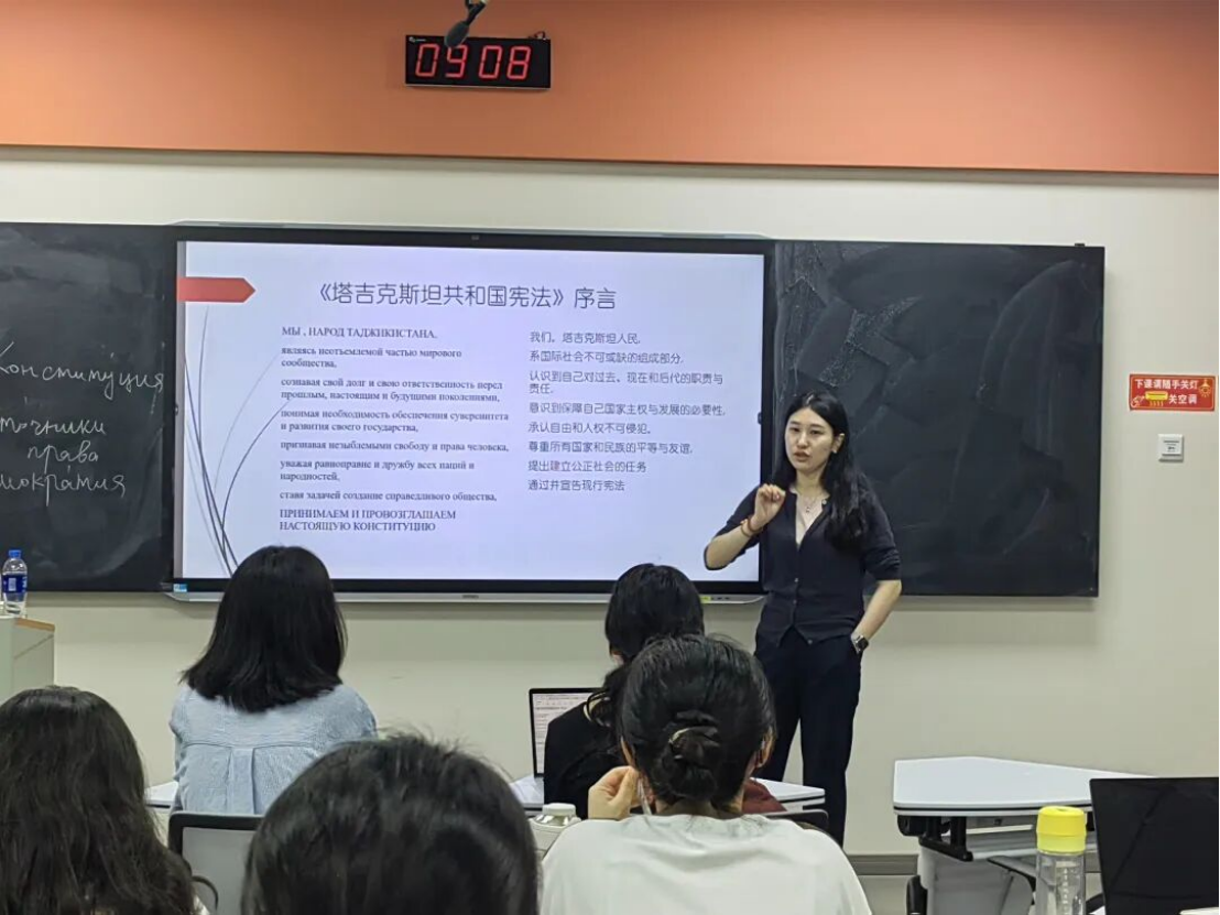 刘秋岑副教授围绕宪法领域的核心议题展开系统讲解。她首先从比较法的视角出发,系统梳理了宪法的核心价值体系与关键功能;随后聚焦中亚五国宪法文本,深入剖析其历史渊源与形成背景,全面解读宪法的基本内容、制度设计与核心条款;最后,刘秋岑副教授结合当前国际法治发展趋势与中亚地区社会发展动态,对中亚五国宪法未来的演进方向与发展路径作出前瞻性研判。