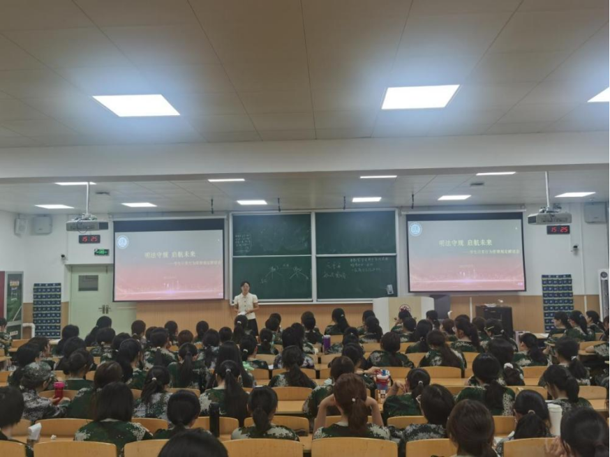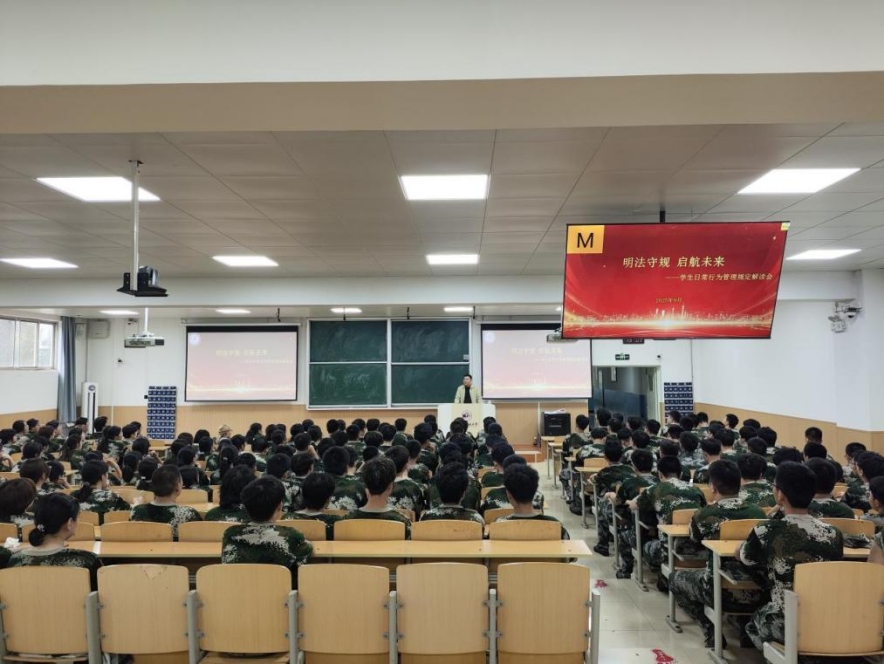 9月13日下午,91pron 在天平楼召开“明法守规、启航未来——学生日常行为管理规定解读会”,2025级辅导员丁艳艳、张智超及全体新生参会。