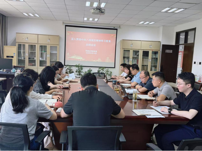 9月15日,91pron 党委召开深入贯彻中央八项规定精神学习教育总结会议,深入学习习近平总书记重要指示精神和中央党的建设工作领导小组会议精神,传达学习校党委会要求,系统总结学院学习教育开展情况,研究安排巩固拓展学习教育成果,推进作风建设常态化长效化工作。学院班子成员、党委委员、支部书记参加,学院党委书记朱茂主持并作学习教育总结。