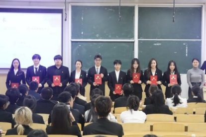 主持人正式宣读了新一届学生会主席团成员名单,并宣布了各部门部长、副部长以及优秀志愿者名单。会上,到场老师和上一届主席团成员为全体新任职的主席团成员、各部门负责人以及优秀志愿者颁发证书,并合影留恋。
