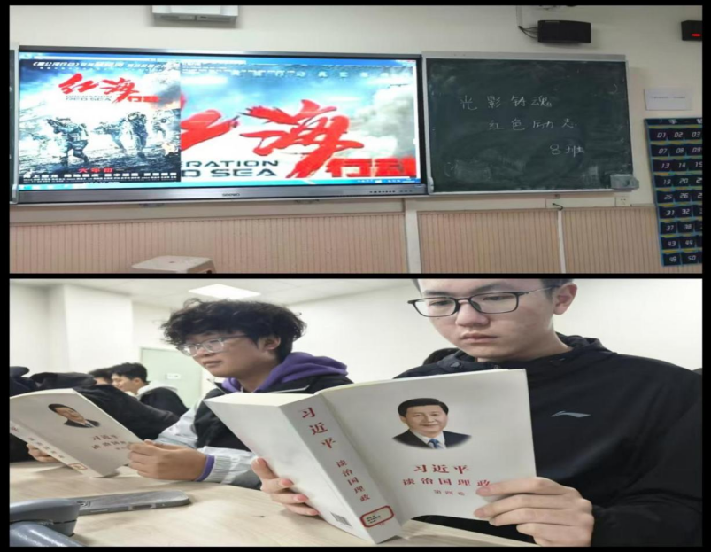 本次晨读活动充分利用现代化信息技术与多元化媒介,有效激发了学生的学习主动性。部分班级尝试网络资源进行晨读学习,帮助同学们适应信息化学习趋势,拓展知识获取渠道。八班选取爱国主义题材影片《红海行动》,引导同学们在震撼的光影艺术中,感悟中国军人的忠诚与担当,于潜移默化中传承红色基因,砥砺奋斗精神。七班通过共读《习近平谈治国理政》、观看建党百年纪录片,将理论学习、党史学习教育与专业学习相结合,引导同学们深入领会新时代思想,从党的辉煌历程中汲取力量,思考青年一代的使命担当。